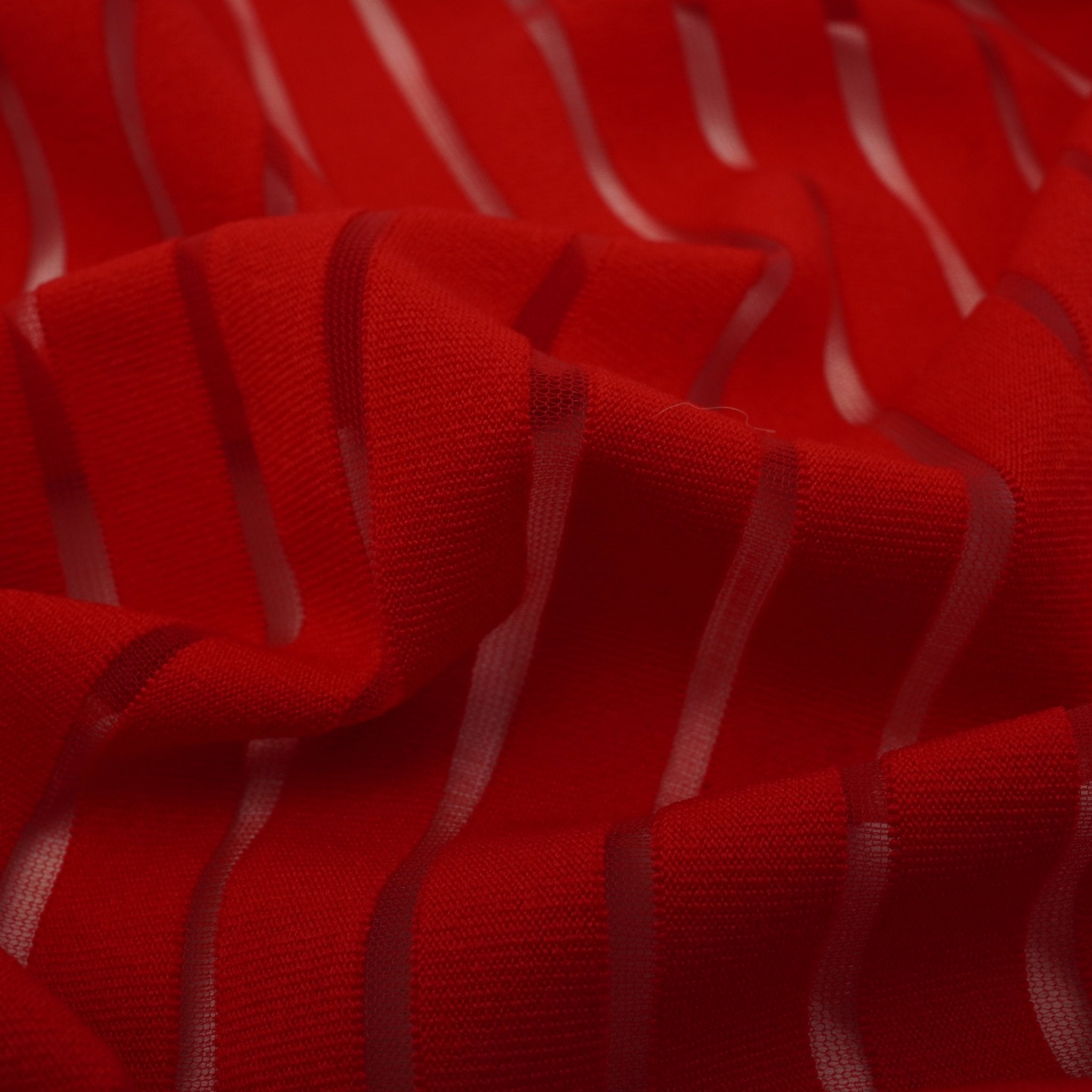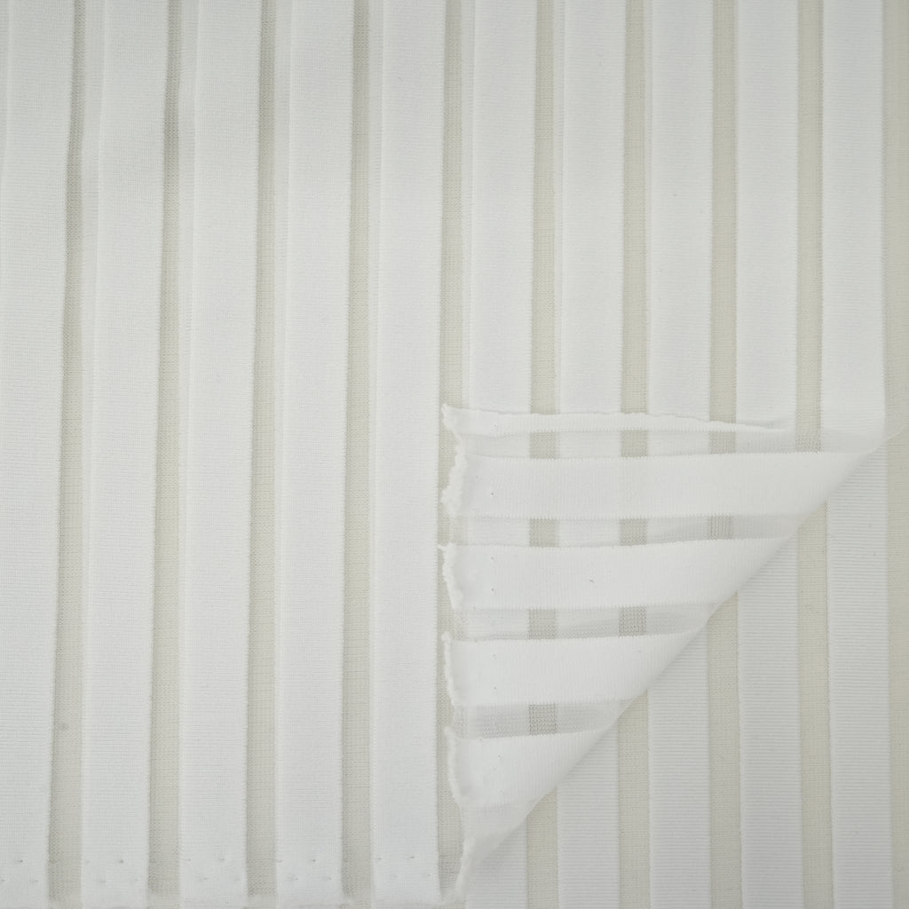 Striped Mesh is a 2-way stretch Solid and Sheer Mesh; ideal for formal designs. The material is breathable and lightweight, making it perfect for all-day comfort. It's easy to care for, and will keep your garment looking great for many wears. Enjoy lasting vibrancy and a fresh look, no matter how often you wear your garment.